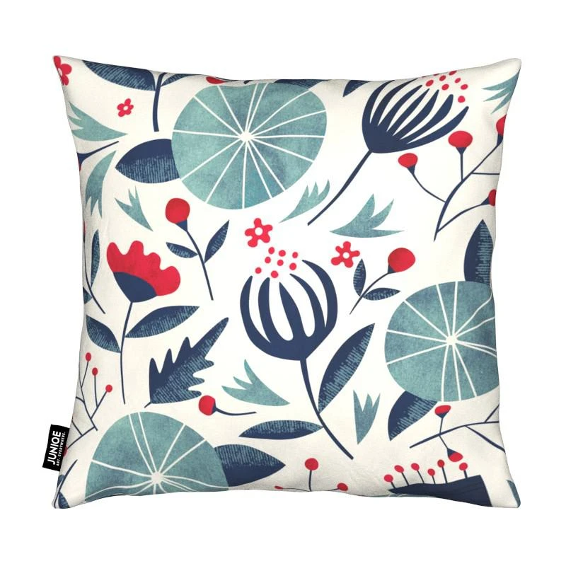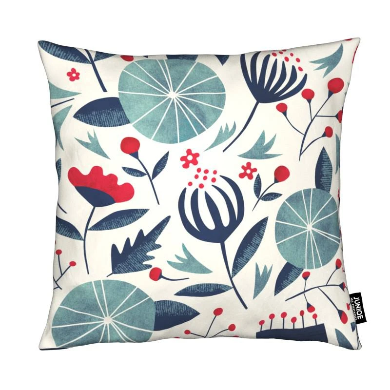 Quadratischer Kissenbezug mit All-Over-Druck und Reißverschluss. Bezug aus weichem, allergikergeeignetem Material. Füllkissen aus Kunstfaser. Versteckter Reißverschluss.